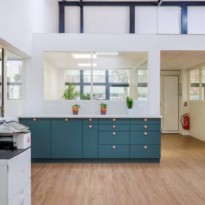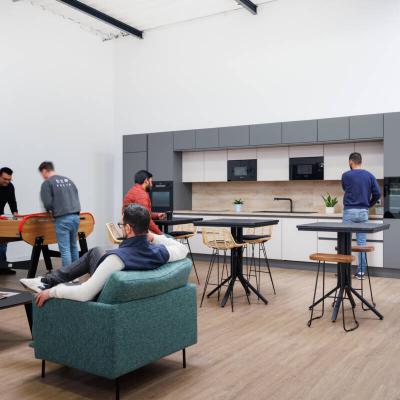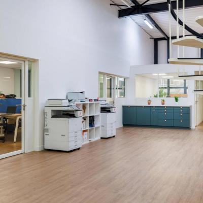Un soin particulier a été apporté à la lisibilité des espaces, à l’ergonomie des postes, et au confort acoustique. Pour renforcer la cohésion, un espace de convivialité a été créé : coin salon, babyfoot, cuisine équipée… Un lieu pensé pour se retrouver autrement, échanger, se détendre et nourrir l’esprit d’équipe.