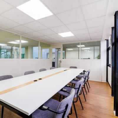 Des bureaux bench ont été aménagés pour favoriser la collaboration au sein des différents pôles, et une salle de réunion spacieuse pouvant accueillir jusqu’à 10 personnes a été pensée pour répondre aux besoins des échanges formels, des points d’équipe ou des réunions clients.